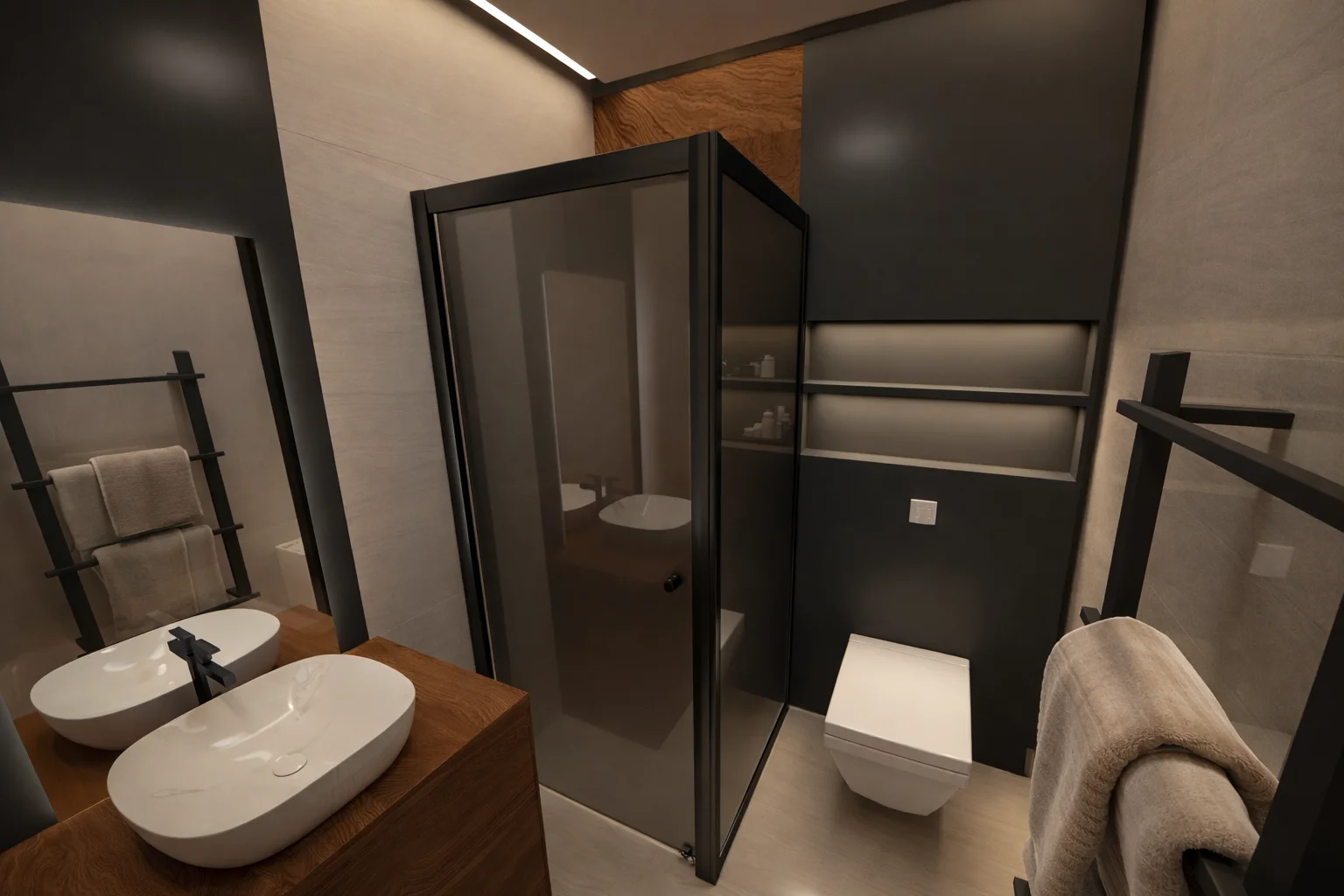 استمتع بتجربة الاسترخاء اليومي في منزلك. نصمم حمامات أنيقة وعصرية تتميز بأرقى التجهيزات وتوزيعات مبتكرة تمنحك مزيجاً من الأناقة والرفاهية.